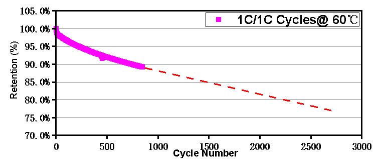高溫60℃儲(chǔ)存90天容量保持率>95%,恢復(fù)率>96%;